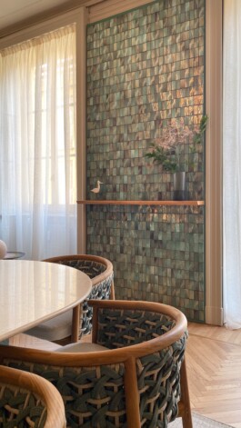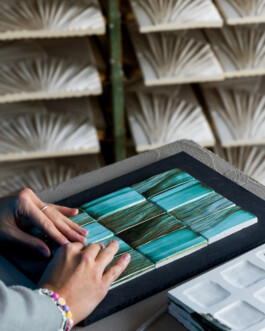 Thinking of Botteganove means imagining intricate tile compositions, coming together to create vast ceramic surfaces, unique in their precious reflections and complex three-dimensionality. Yet, it is only through a deeper gaze that one can truly see what makes these surfaces so special—perceiving the distinctive details that define each individual element. Every tile encapsulates a series of meticulously combined processes, blending craftsmanship and experimentation.