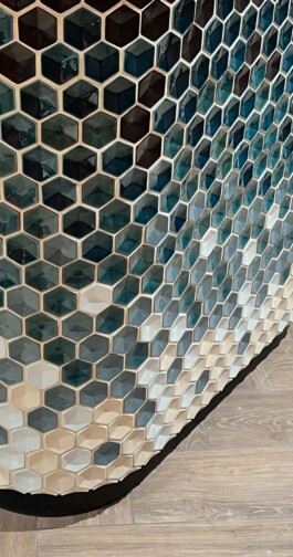 One of the classic shapes in ceramics, the hexagonal tile, stands out here for its three-dimensionality and the finishing characteristics, achieved through hand-brush processing. Clinker, with its name, evokes the historic brick material and reflects its distinctive vitrified surface, with glazes that create colors with special nuances.