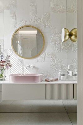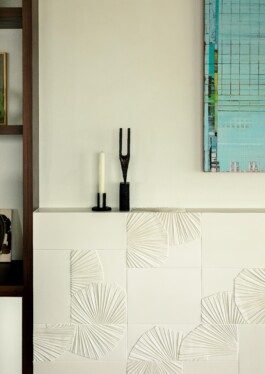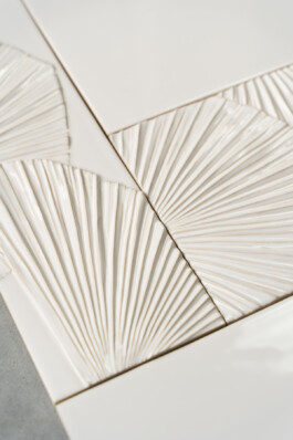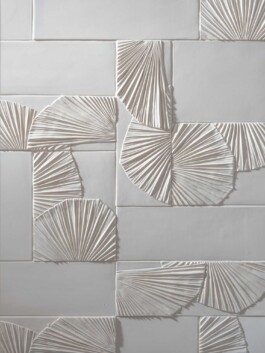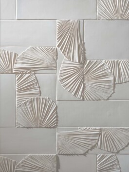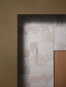 A geometry inspired by the natural world becomes both an inspiration and a decorative element for a ceramic surface, where delicate reliefs gracefully highlight the unique traces of artisanal craftsmanship. The Flora collection offers extensive customization possibilities, with a variety of formats and color combinations.